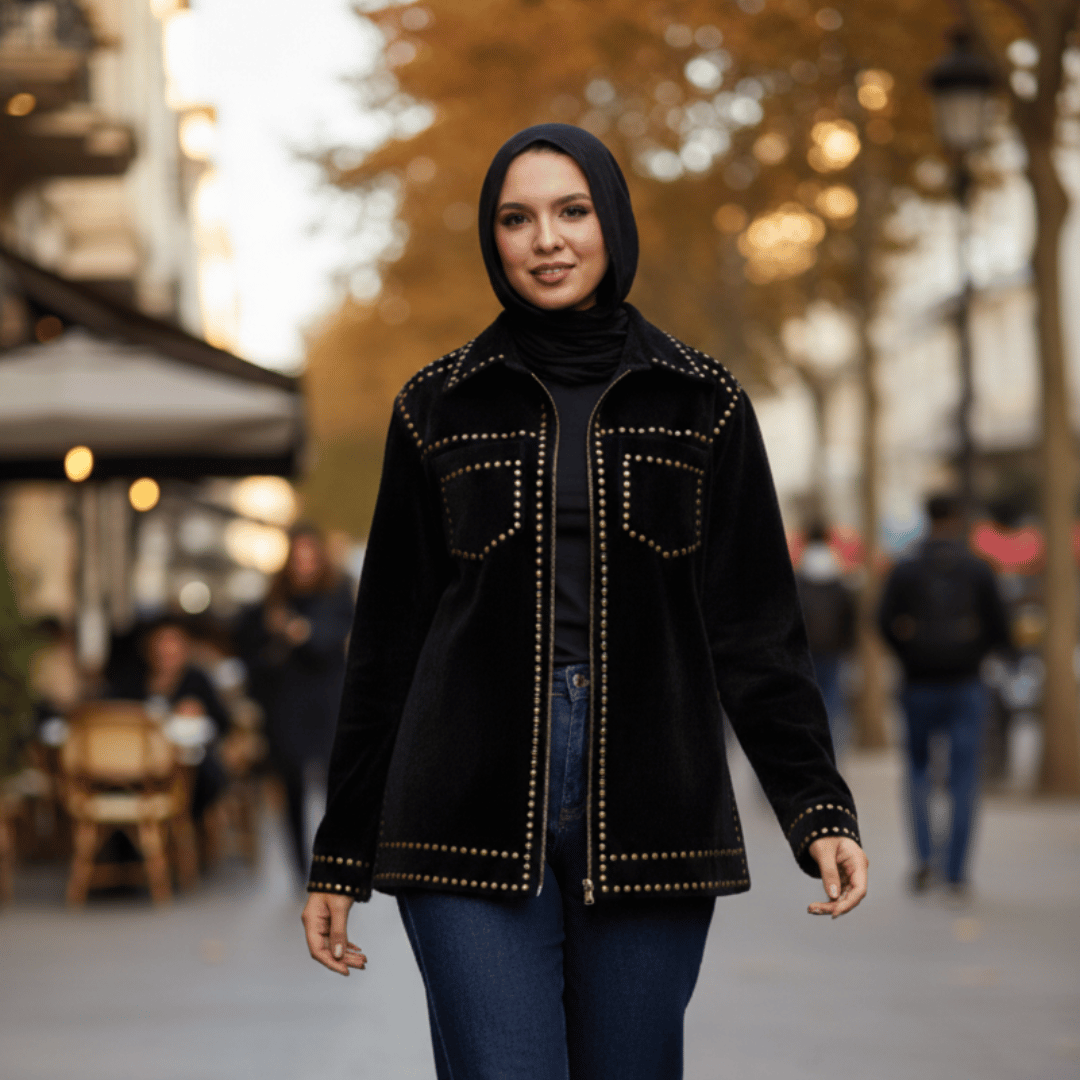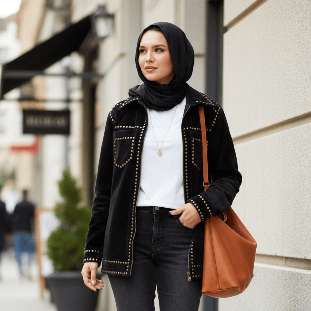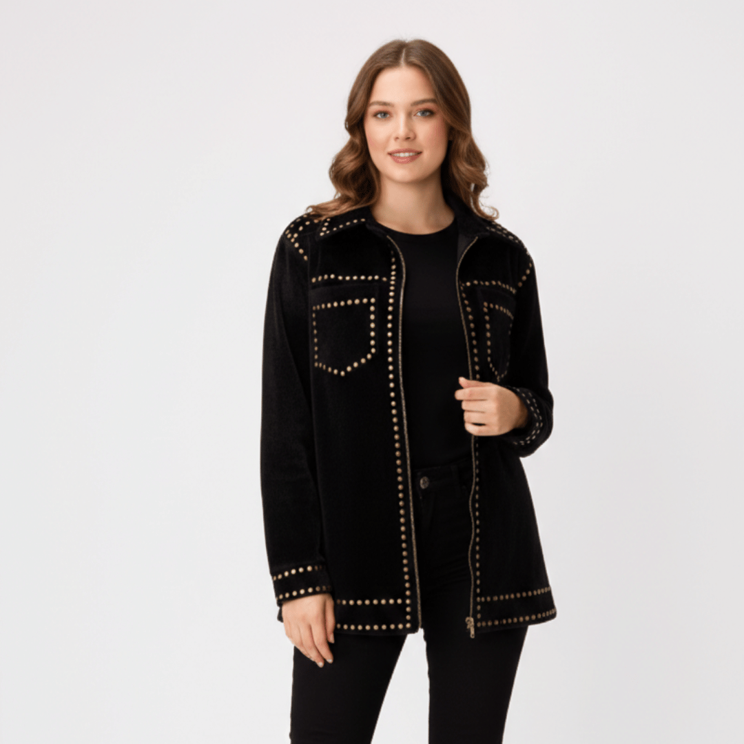 Metallic stud details add character to your outfit, giving you a bold look that stands out .