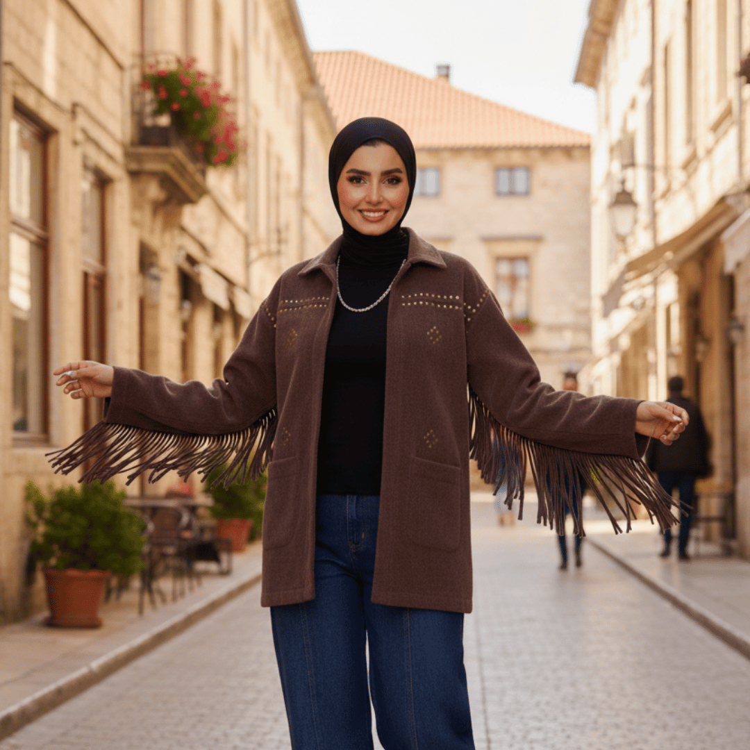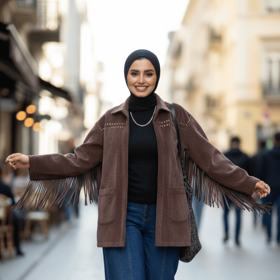 Fringe edges add movement and texture, creating visual interest that lifts simple outfits.