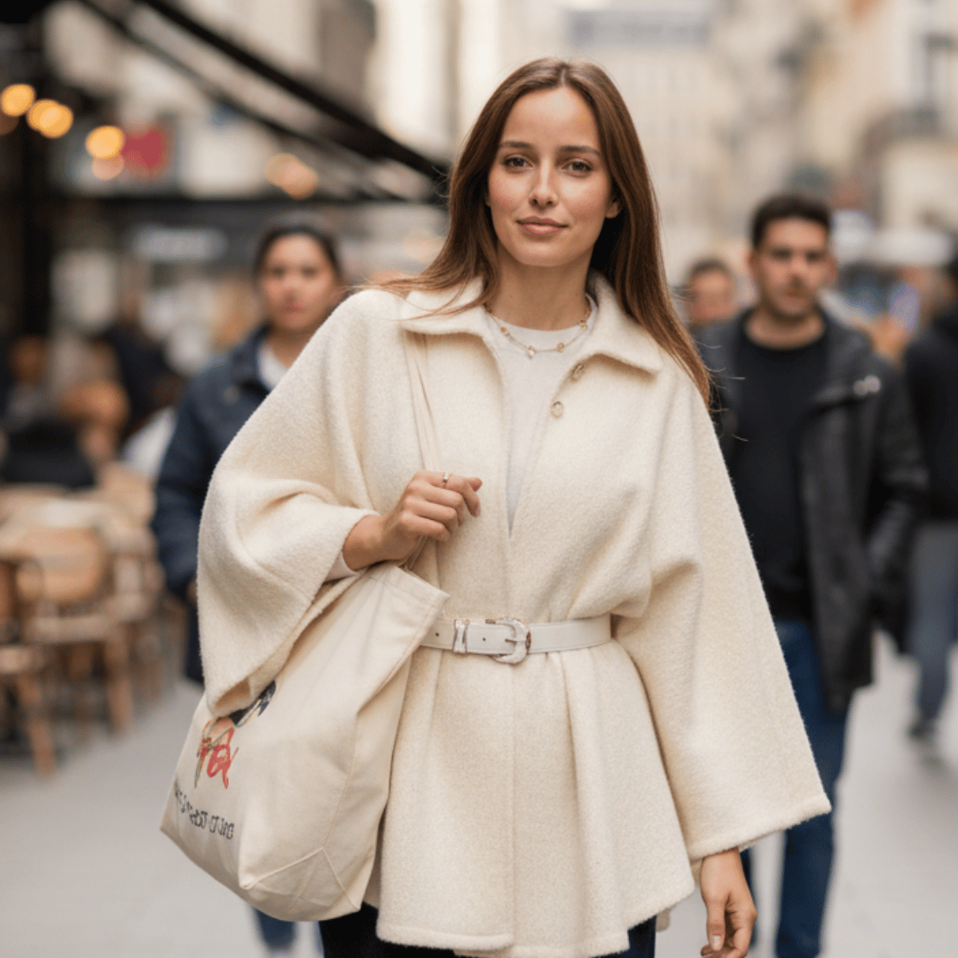 Comfortable and easy to wear, this cape fits modest looks naturally.